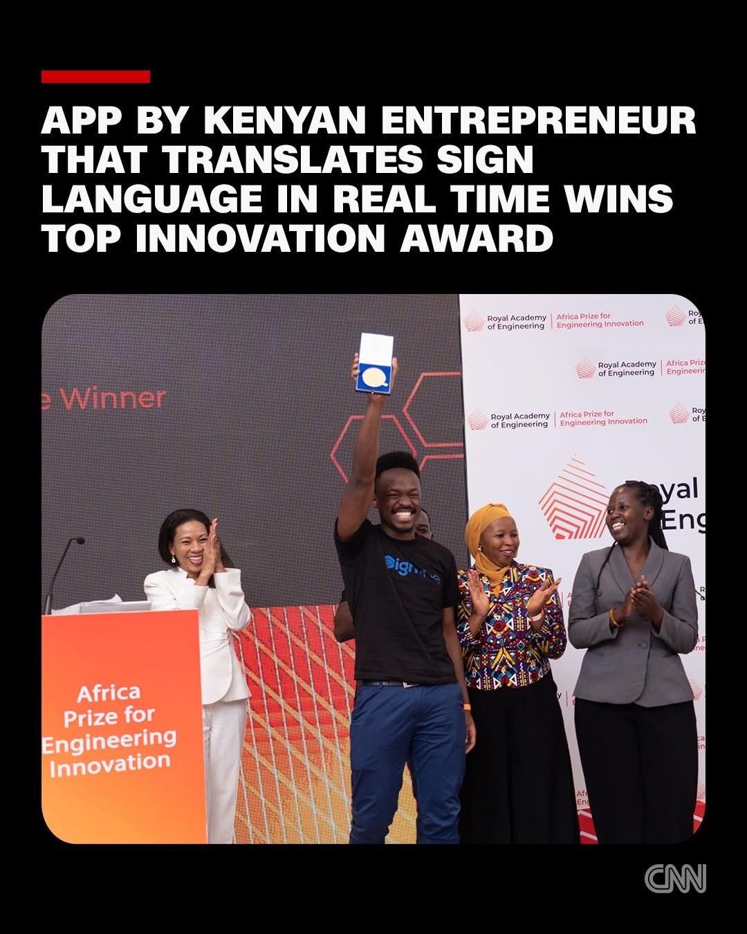 AdrianBryan 🇰🇪 Elly Savatia designed an app that translates speech into sign language using AI-powered 3D avatars. He was awarded £50,000 (Ksh8.6m) by the UK’s Royal Academy of Engineering for winning its prestigious Africa Prize for Engineering Innovation