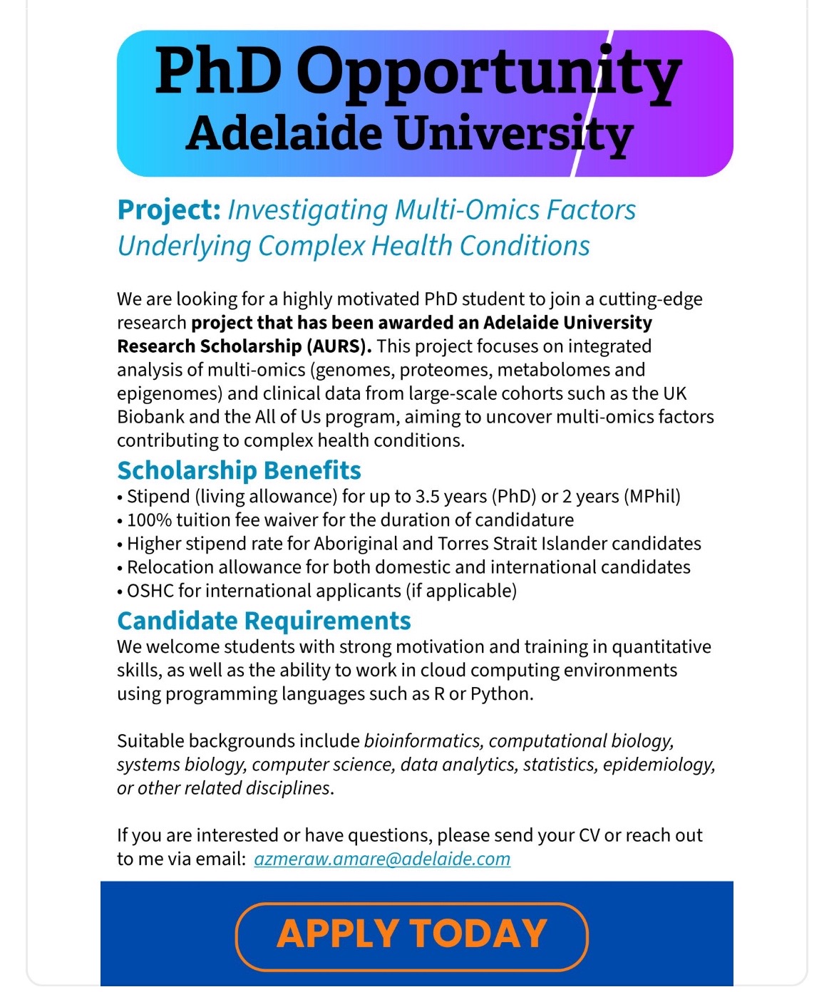 otukama PhD Opportunity Adelaide University