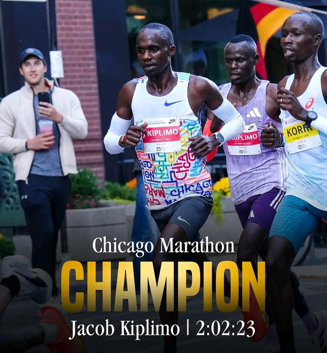 AdrianBryan Congratulations to Jacob Kiplimo on winning the Bank of America Chicago Marathon in stunning fashion πΊπ¬ He sets a new Ugandan national record with 2:02:23 making him the 7th fastest man in marathon history.