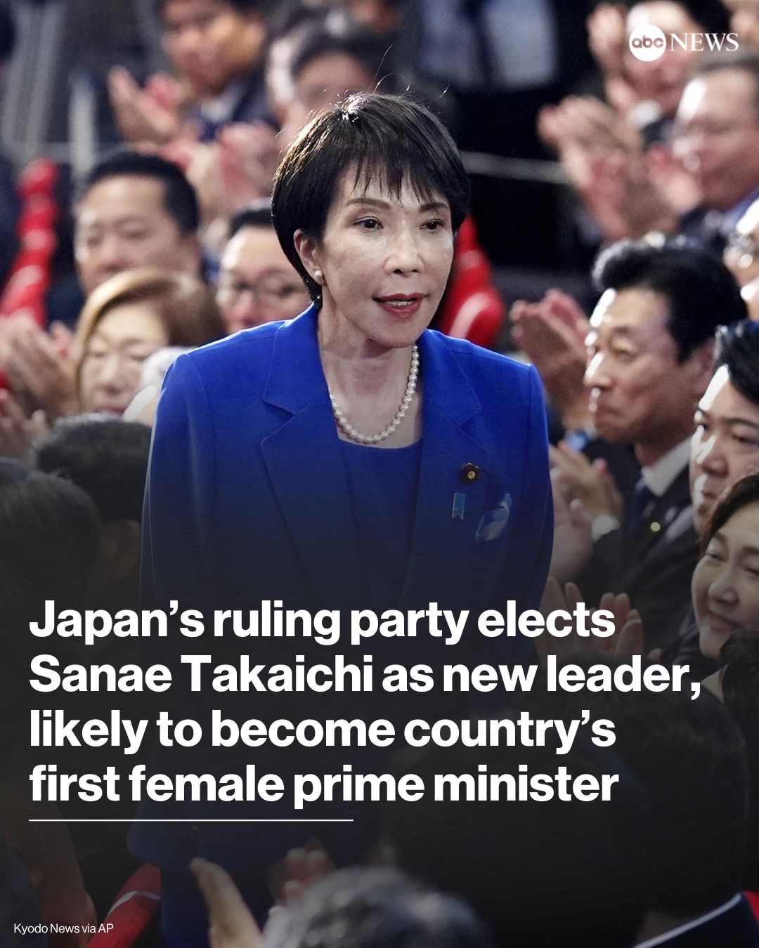 AdrianBryan Japan's governing party has elected former Economic Security Minister Sanae Takaichi as its new leader, making her likely to become the country's first female prime minister.