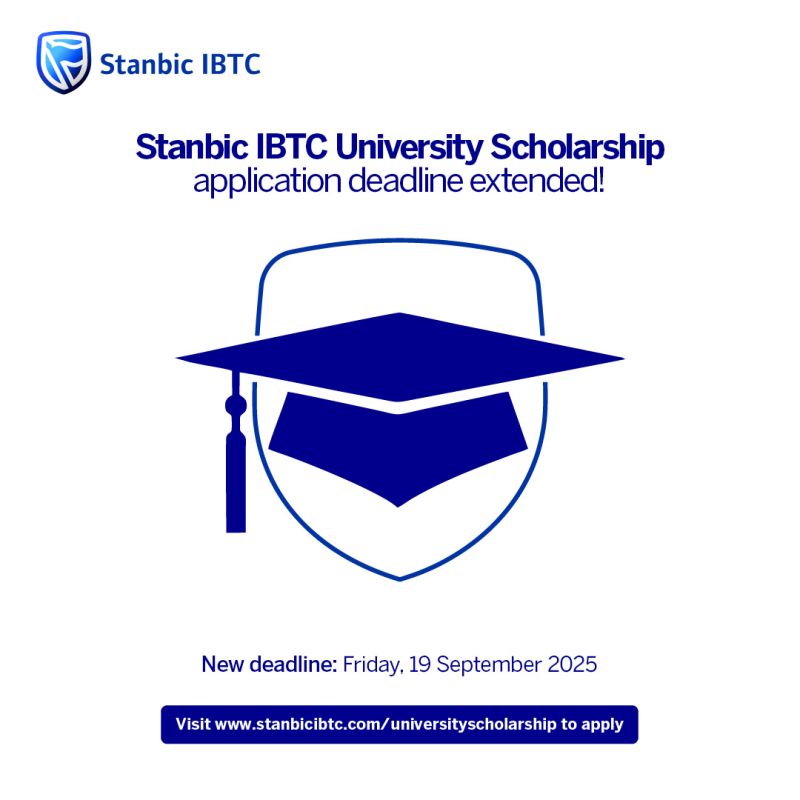 otukama The Stanbic IBTC University Scholarship application deadline has been extended, giving you more time to take this great opportunity. Education opens doors, and we believe every brilliant mind deserves the chance to shine. New deadline: Friday, 19 September 2025. Visit https://lnkd.in/dYGaka5w to apply now.
