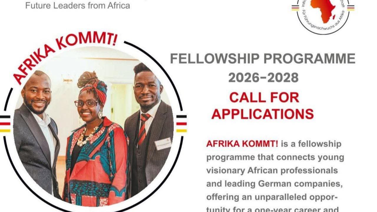 📢 Applications are now open for the “Afrika Kommt” programme, a German business initiative connecting young African leaders under 35 with leading global companies such as Bosch, SAP, Volkswagen, and B. Braun through 34 fully funded one-year scholarships.