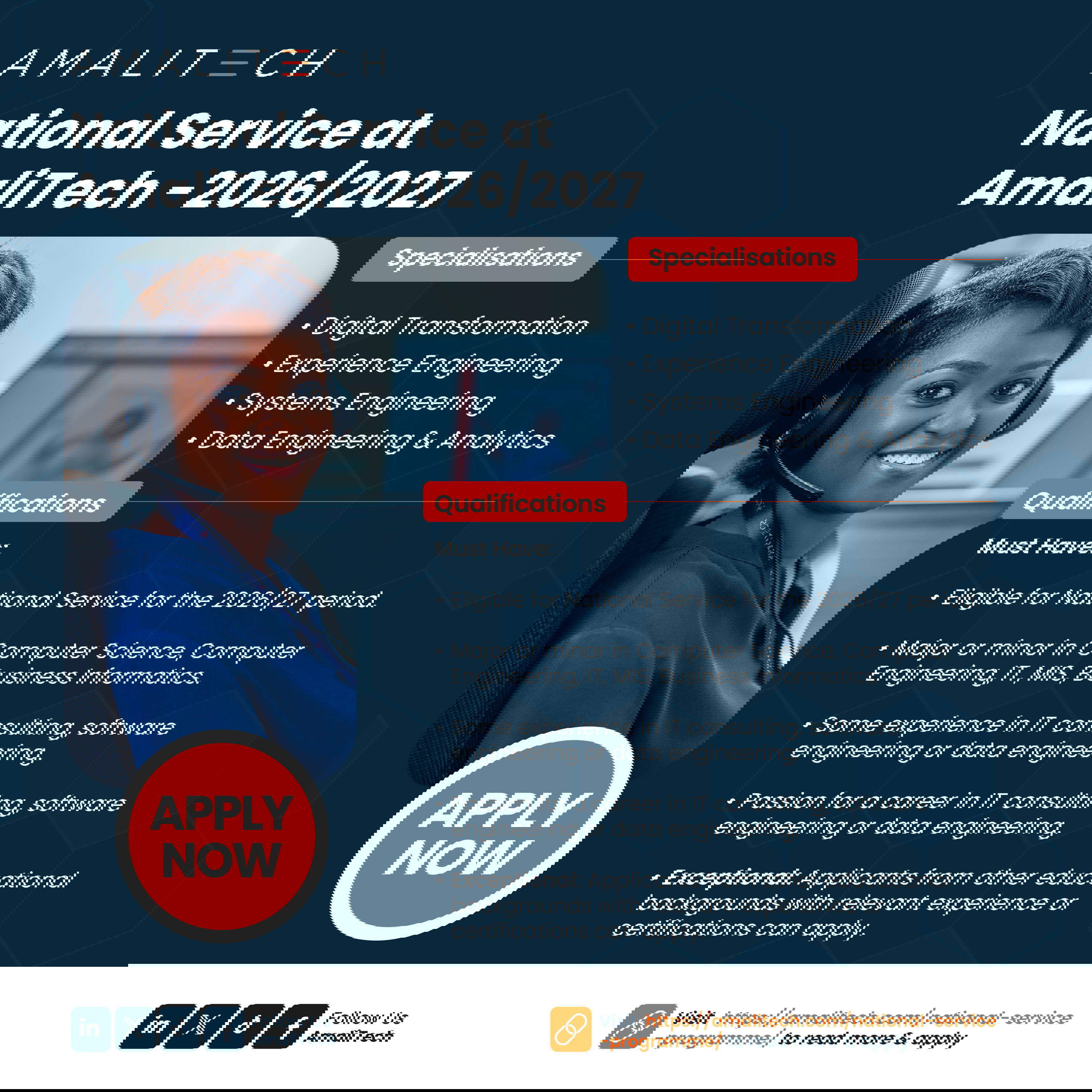 Applications are now open for the AmaliTech National Service Opportunity 2026/2027 in Ghana.