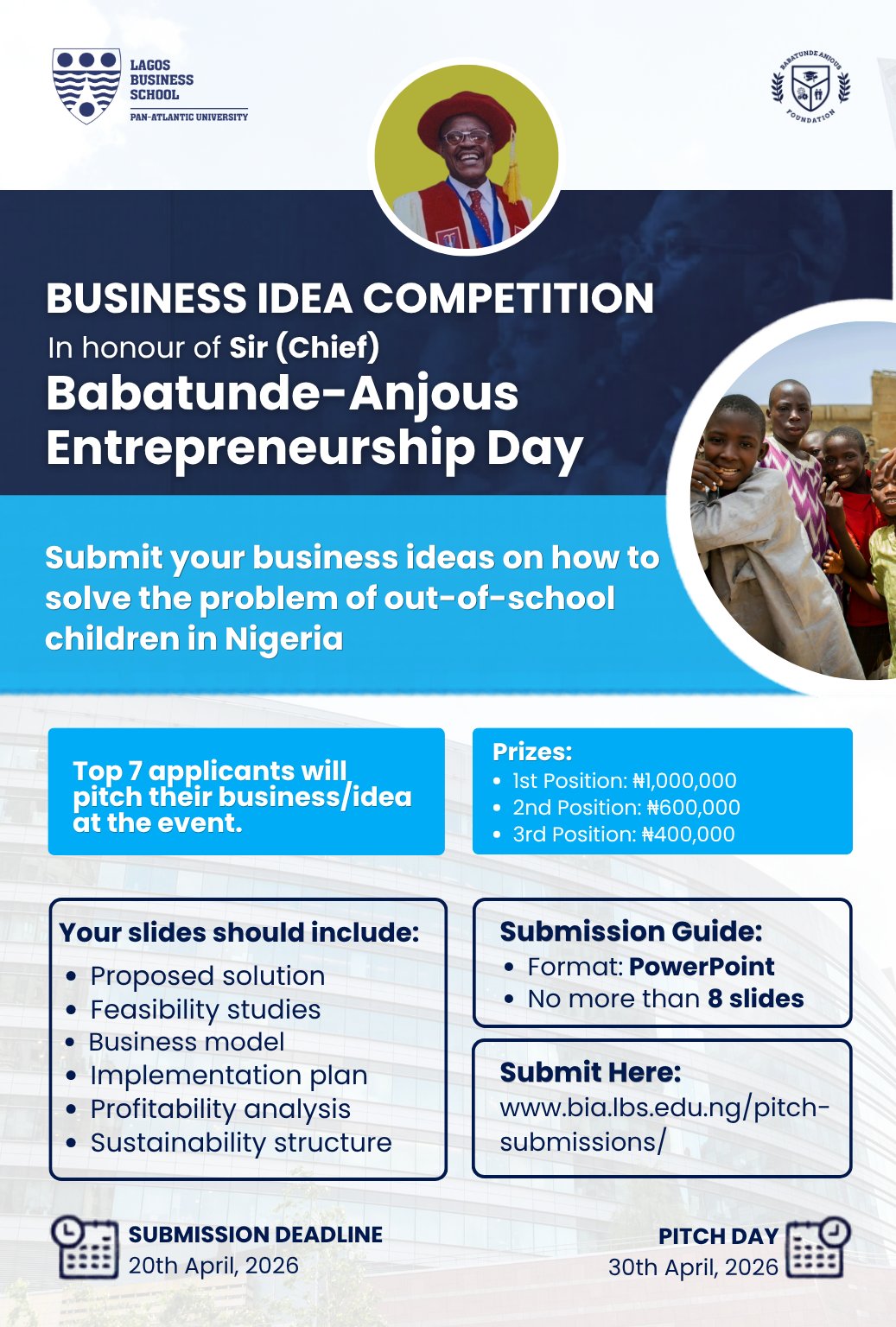 Lagos Business School invites you to the Business Idea Competition (Babatunde Anjous Entrepreneurship Day).