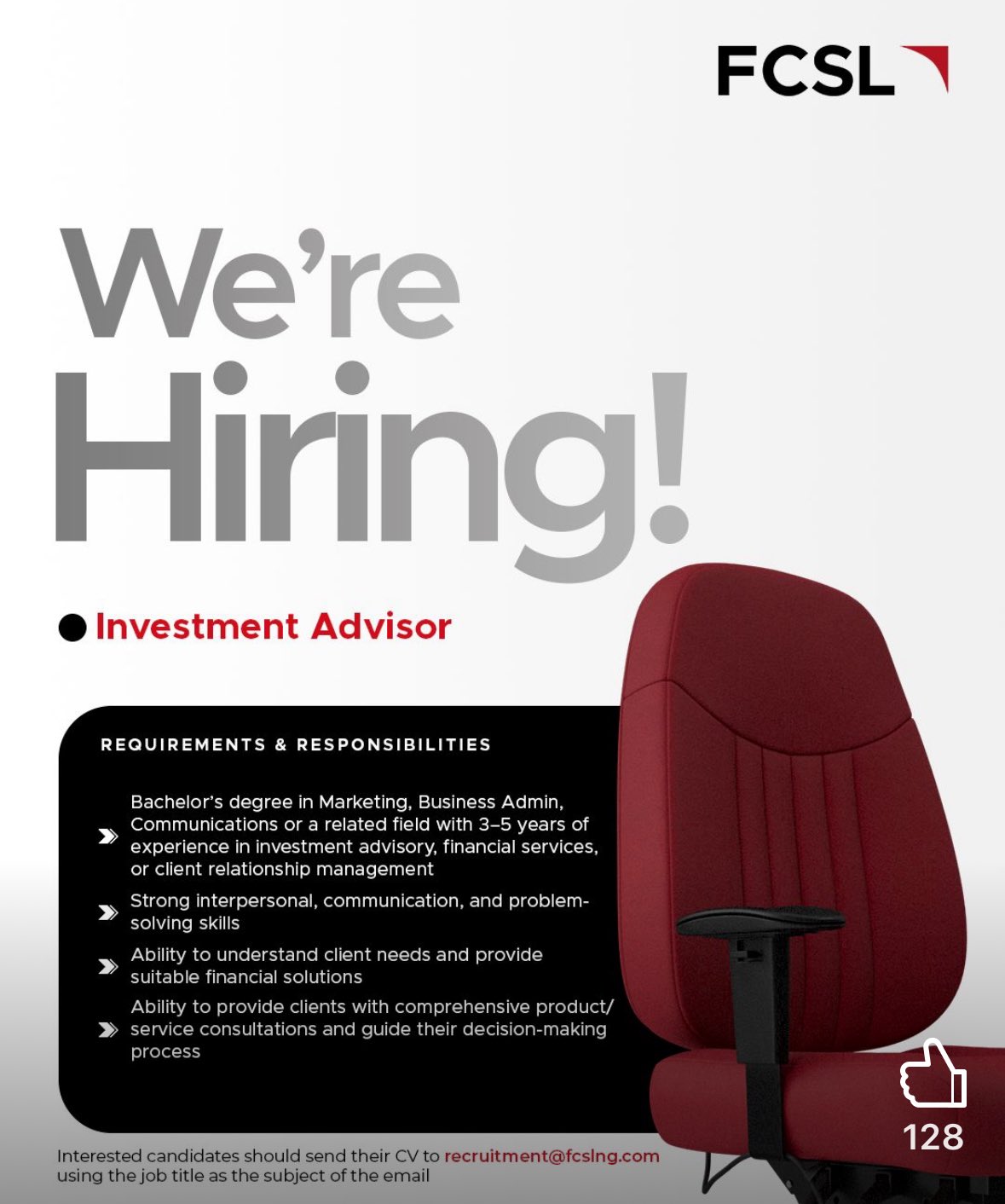 Interested candidates should send their CV to recruitment@fcslng.com using the job title as the subject of the email.