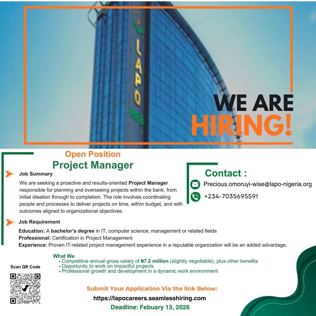 #ProjectManager #LAPOMfB #NowHiring #CareerOpportunity #ImprovingLives