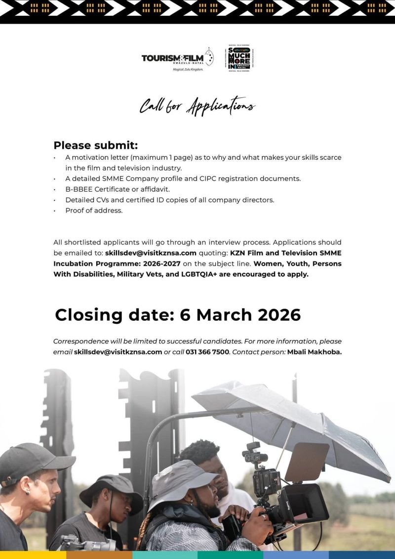 KwaZulu-Natal–based film and television SMMEs are invited to apply for the upcoming Incubation Programme aimed at strengthening scarce skills and growing industry capacity across the province.