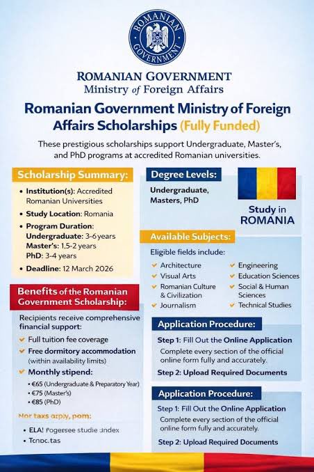 Romanian Government Ministry of Foreign Affairs Scholarships (Fully Funded)